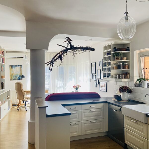 "Felújítás előtt álltunk, de semmi ötletünk nem volt. Felkerestük Borit, aki olyan elképzelésekkel állt elénk, amelyek nekünk soha nem jutottak volna az eszünkbe. A világító fal a lépcsőfeljáróban, a különleges díszcsík a konyhában olyan ötletek voltak, amelyek izgalmassá, egyedivé varázsolták a helyiségeket, ezek lettek a családunk kedvencei is. Nem bántuk meg, hogy rábíztuk a tervezést.”